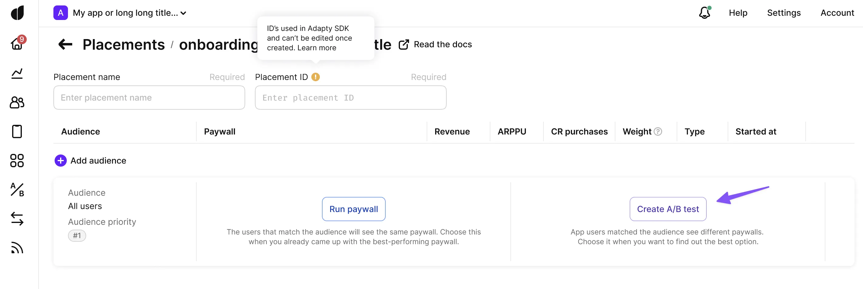 By setting up an A/B test from the Placement detail page, you'll be able to more easily test different paywalls with specific audiences and get valuable insights into what works best for your business.