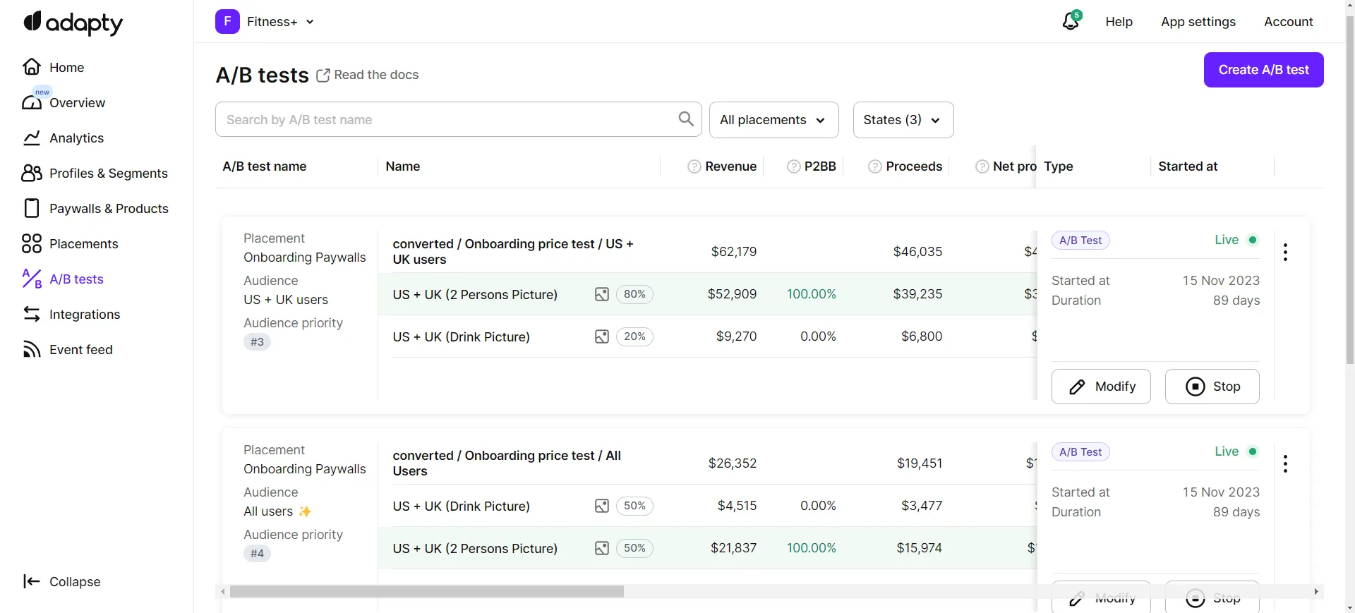 Are you looking to boost your in-app purchases and subscription revenue? One effective way to optimize your offerings is through A/B testing. With Adapty you can easily create and manage A/B tests for different pricing strategies, subscription lengths, trial durations, and more. In this guide, we'll walk you through the steps of creating A/B tests in the Adapty Dashboard and analyzing the results to make data-driven decisions about your in-app purchases and subscriptions. Whether you're new to A/B testing or looking to improve your existing strategies, this guide will provide you with the tools and insights you need to maximize your app's revenue potential.