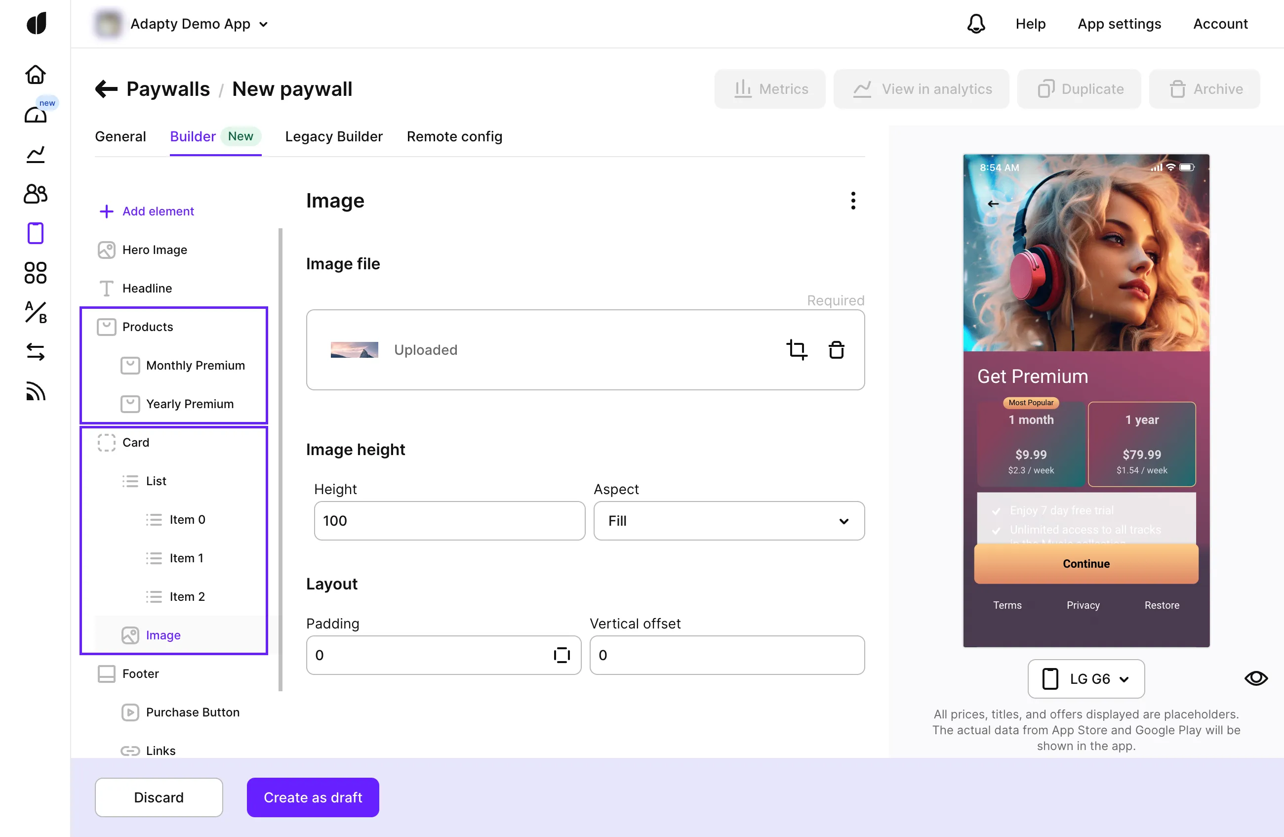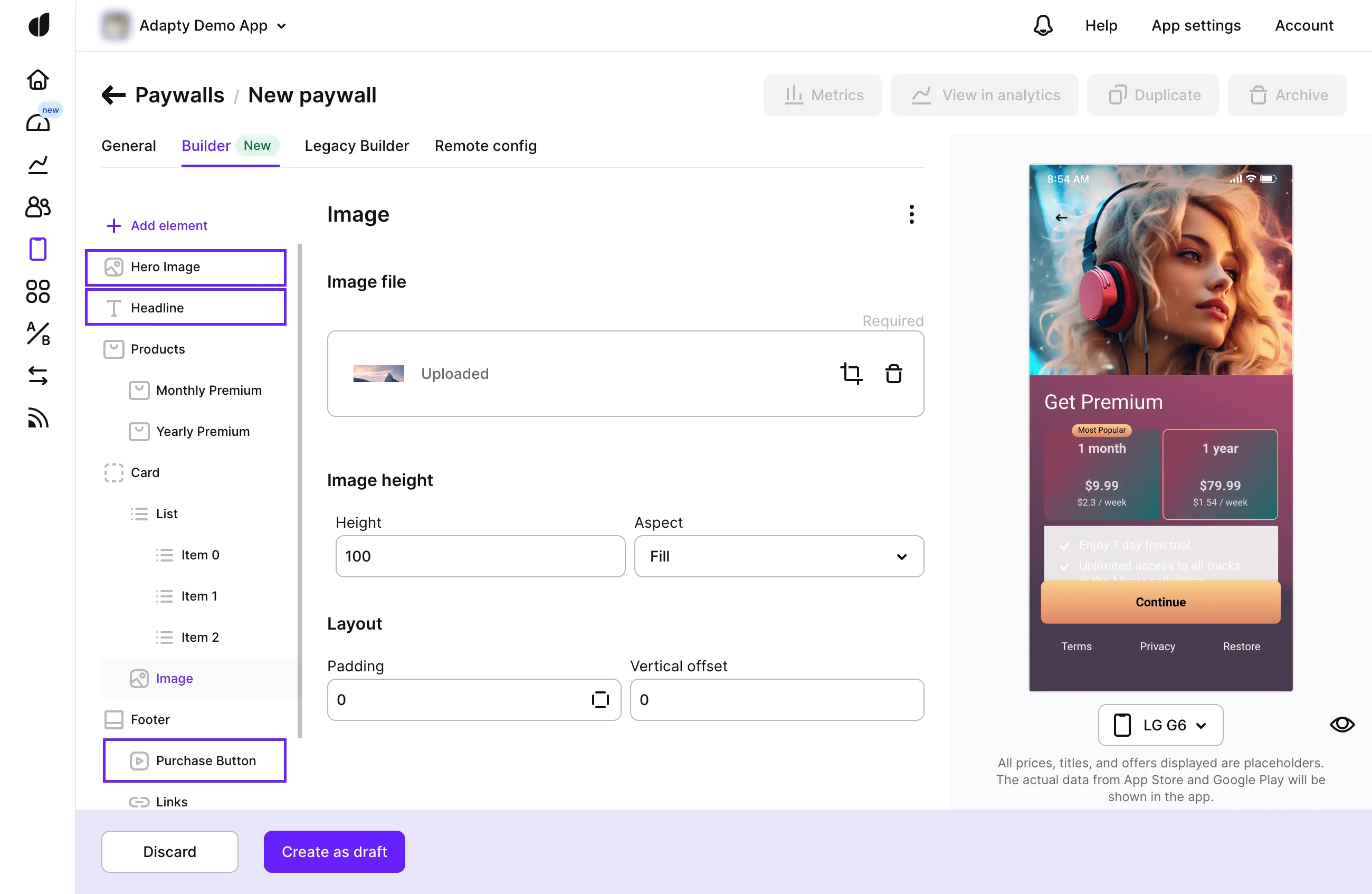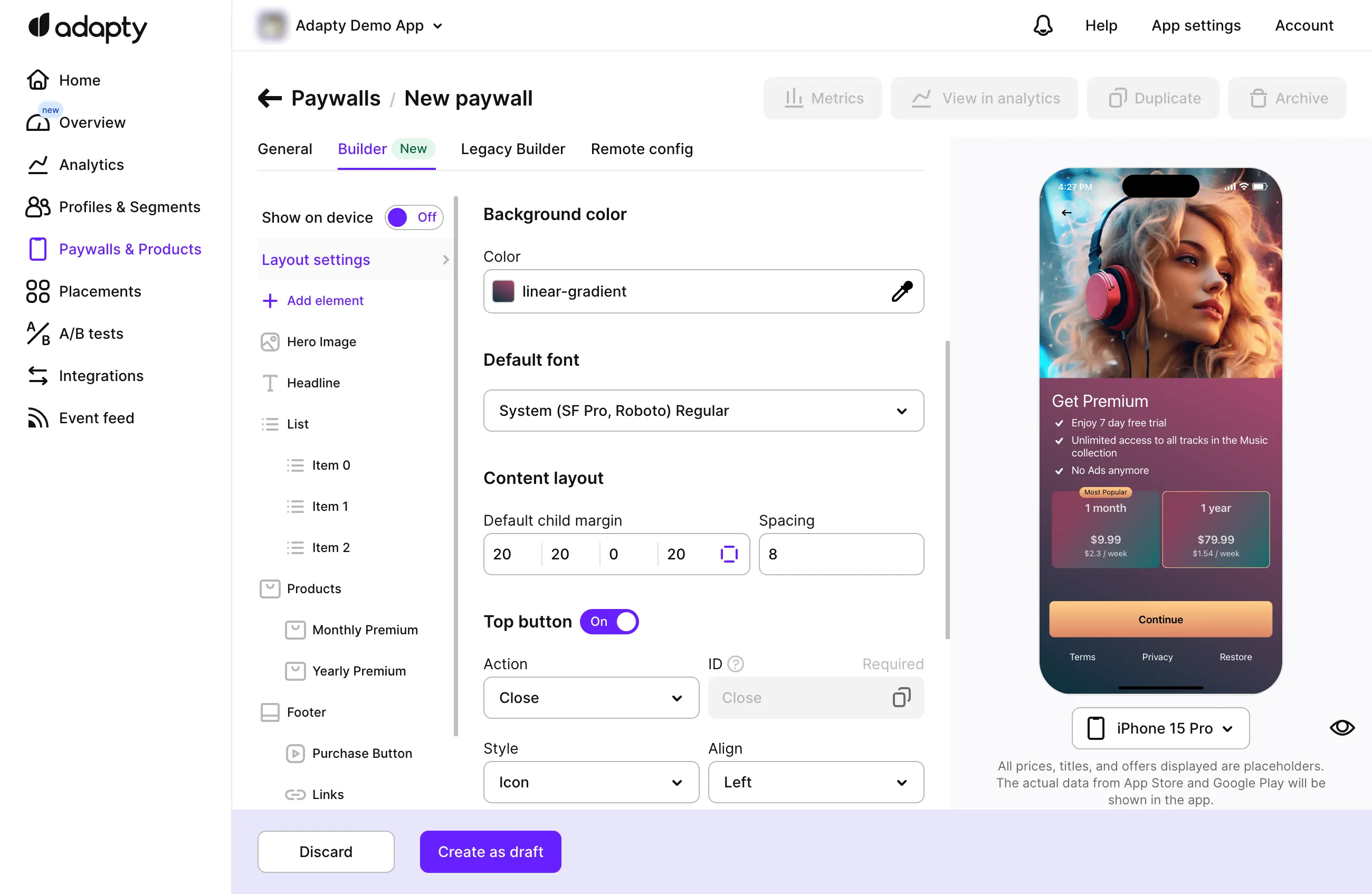 - Enhanced Flexibility: Enjoy greater flexibility with the ability to use design layers and new elements like carousels, cards, product lists, and footers. These enhancements give you the creative freedom to build any type of paywall you envision.