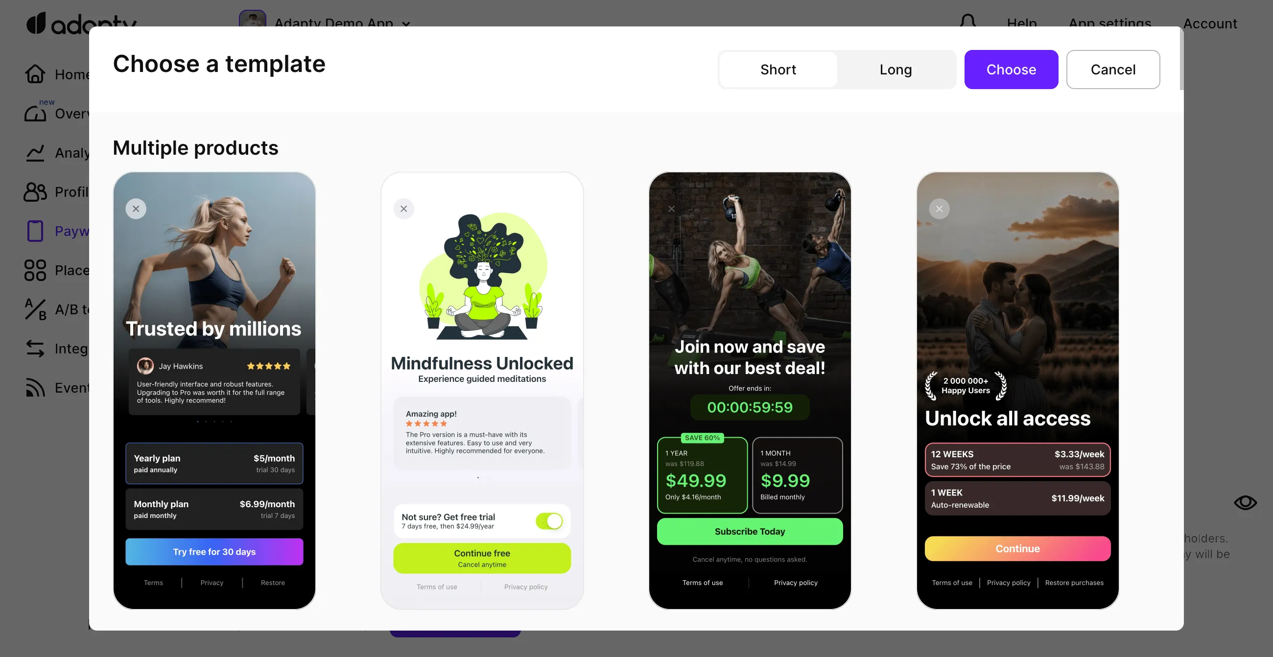 - By leveraging the Adapty Paywall Builder, you can create persuasive paywalls that seamlessly align with your app's branding and purpose based on the selected template.