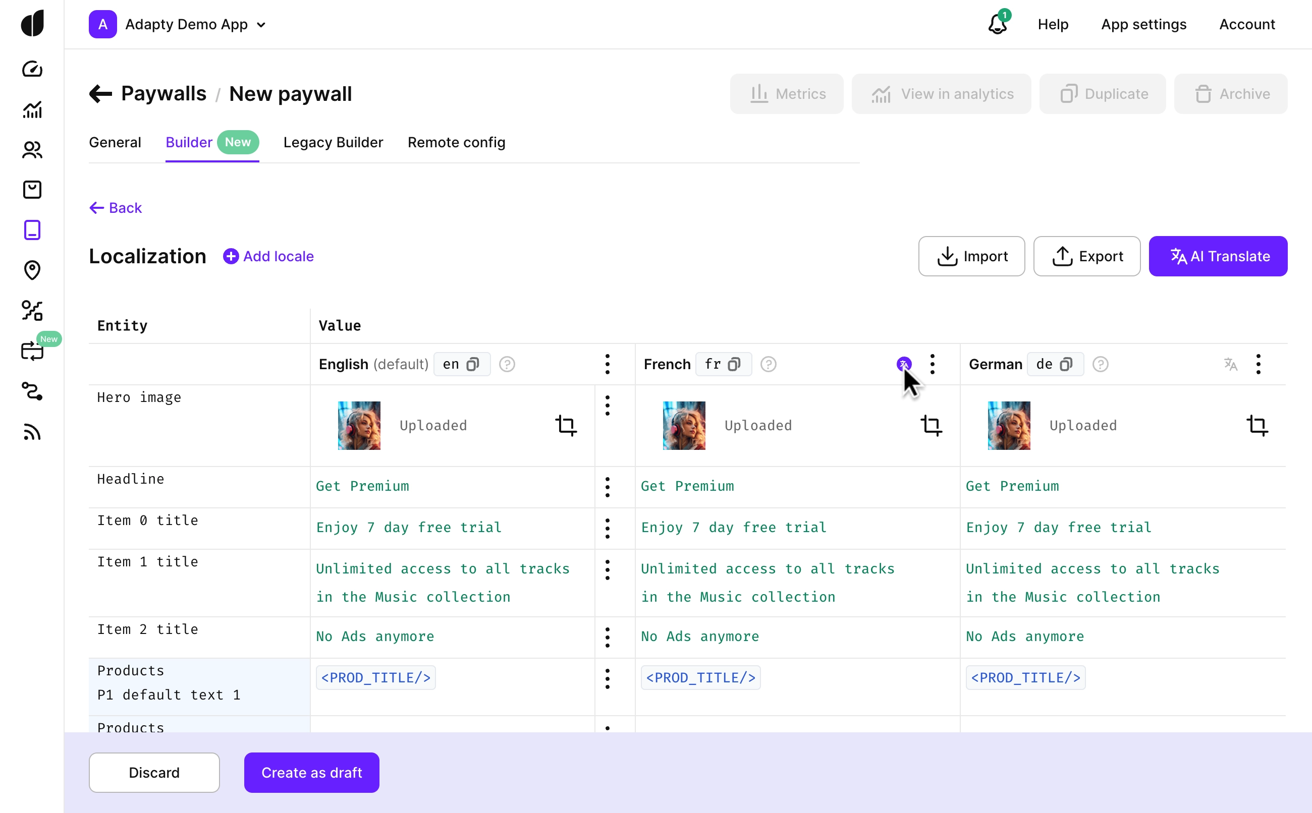 AI-powered translation is a quick and efficient way to localize your paywall.
