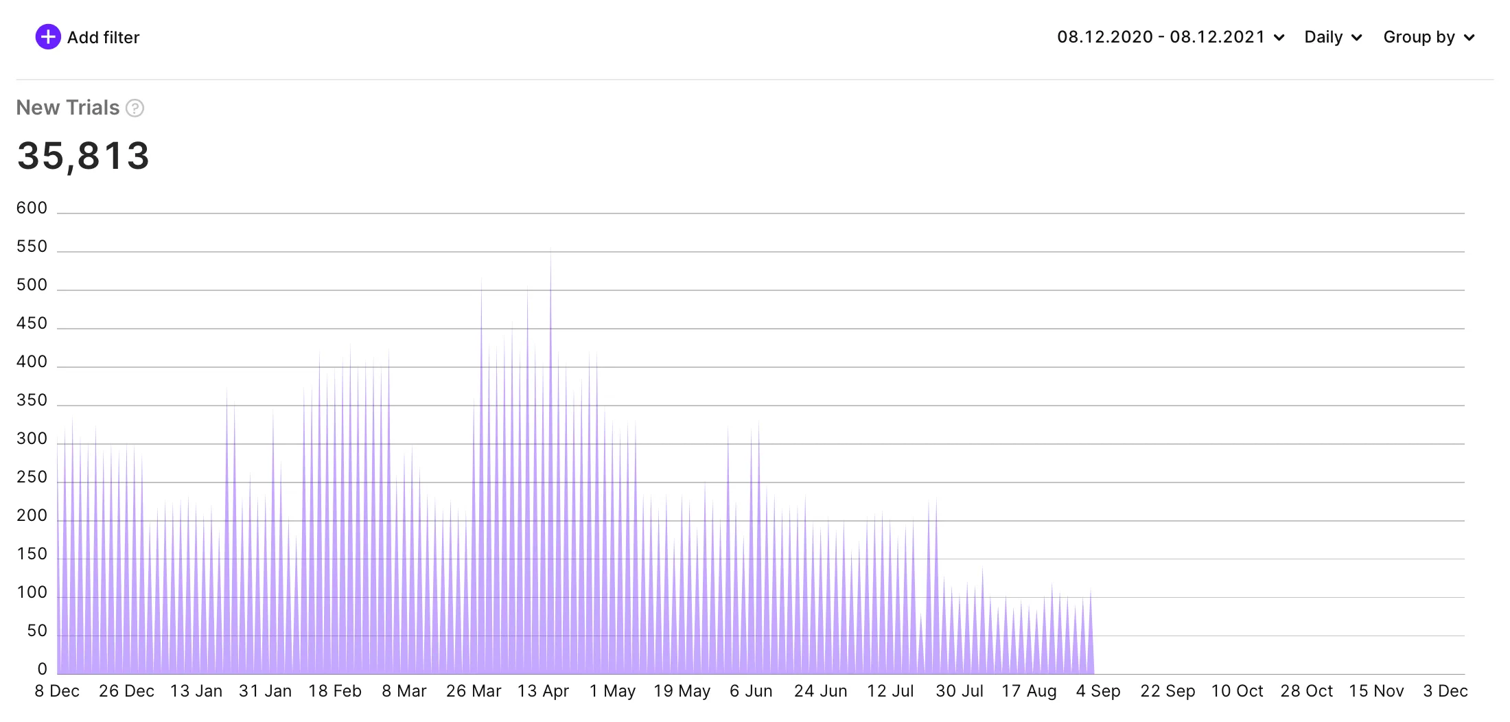 The number of trials that expired, i.e. the user has no access to the premium features of the app. Usually, it means that the user has decided not to pay for the app or encountered a billing issue.