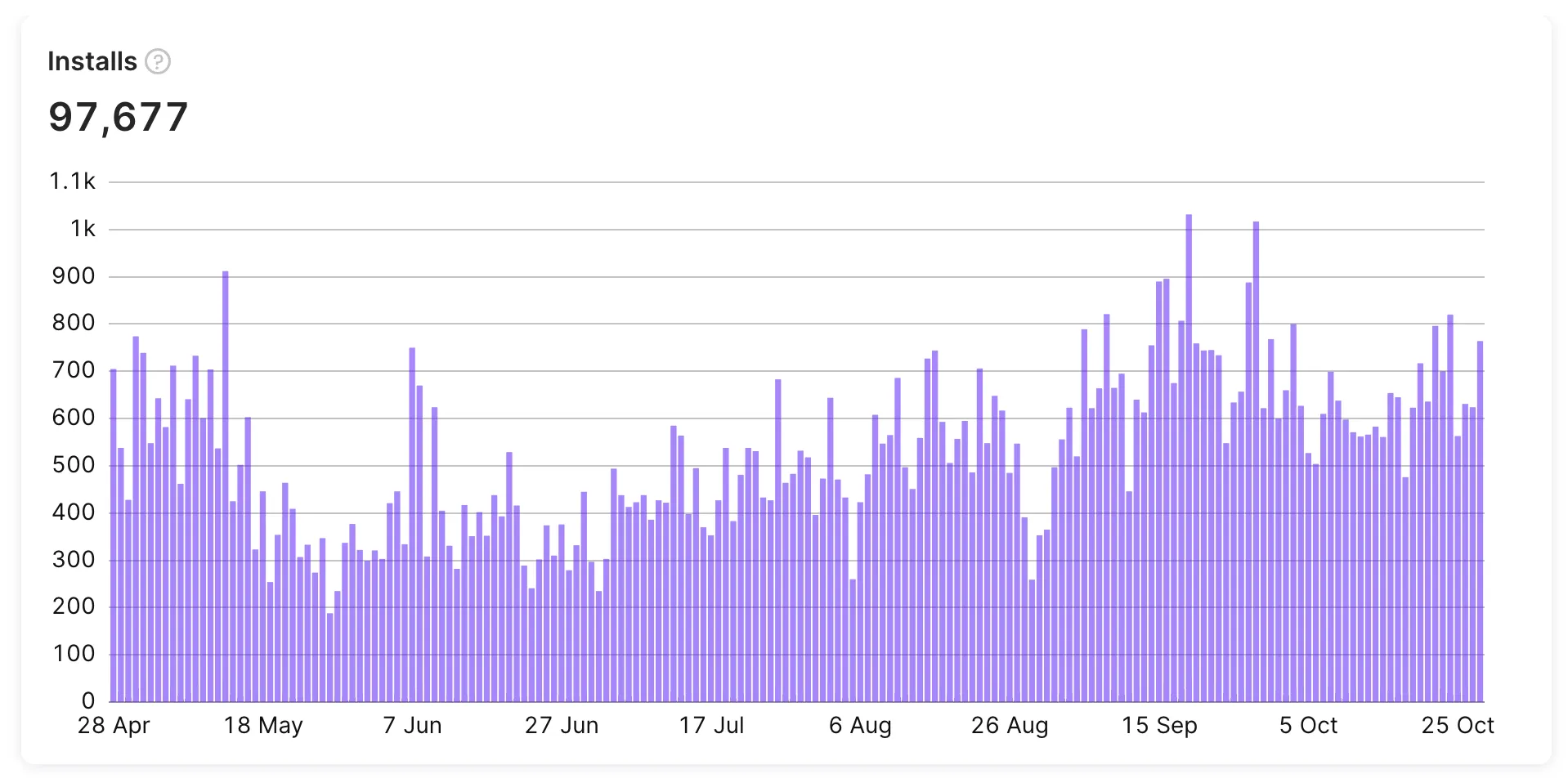 The Installs chart shows the total number of users who have installed the app for the first time, as well as any reinstalls by existing users. This includes multiple installations by the same user on different devices. Please note that incomplete downloads or installations that are canceled before completion are not counted toward the install count.