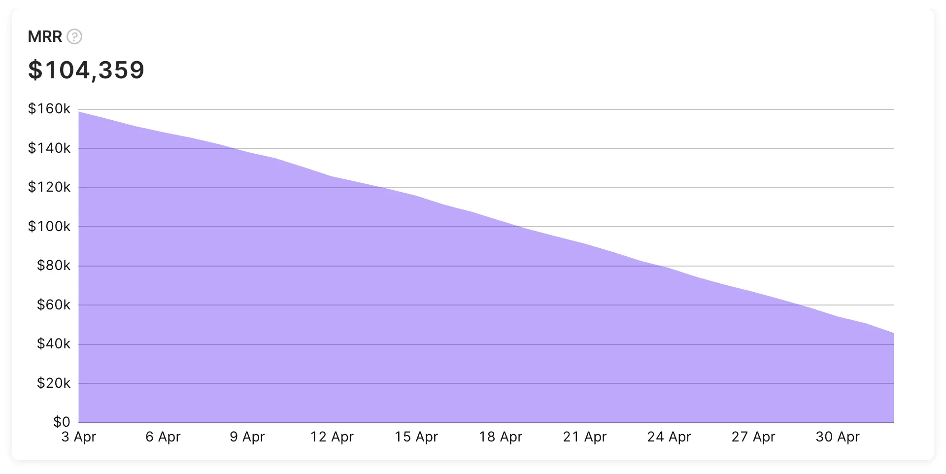 Basically, MRR shows revenue from all active subscriptions normalized to one month. For example, for a yearly subscription, instead of counting full revenue from the start, revenue is split into 12 equal parts which are evenly spread across 12 month period.