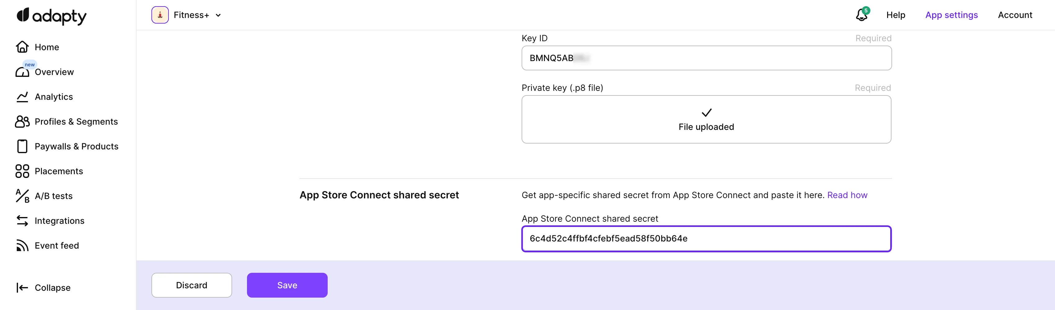 Paste the copied Shared Secret to the App Store shared secret field in the Adapty Dashboard.