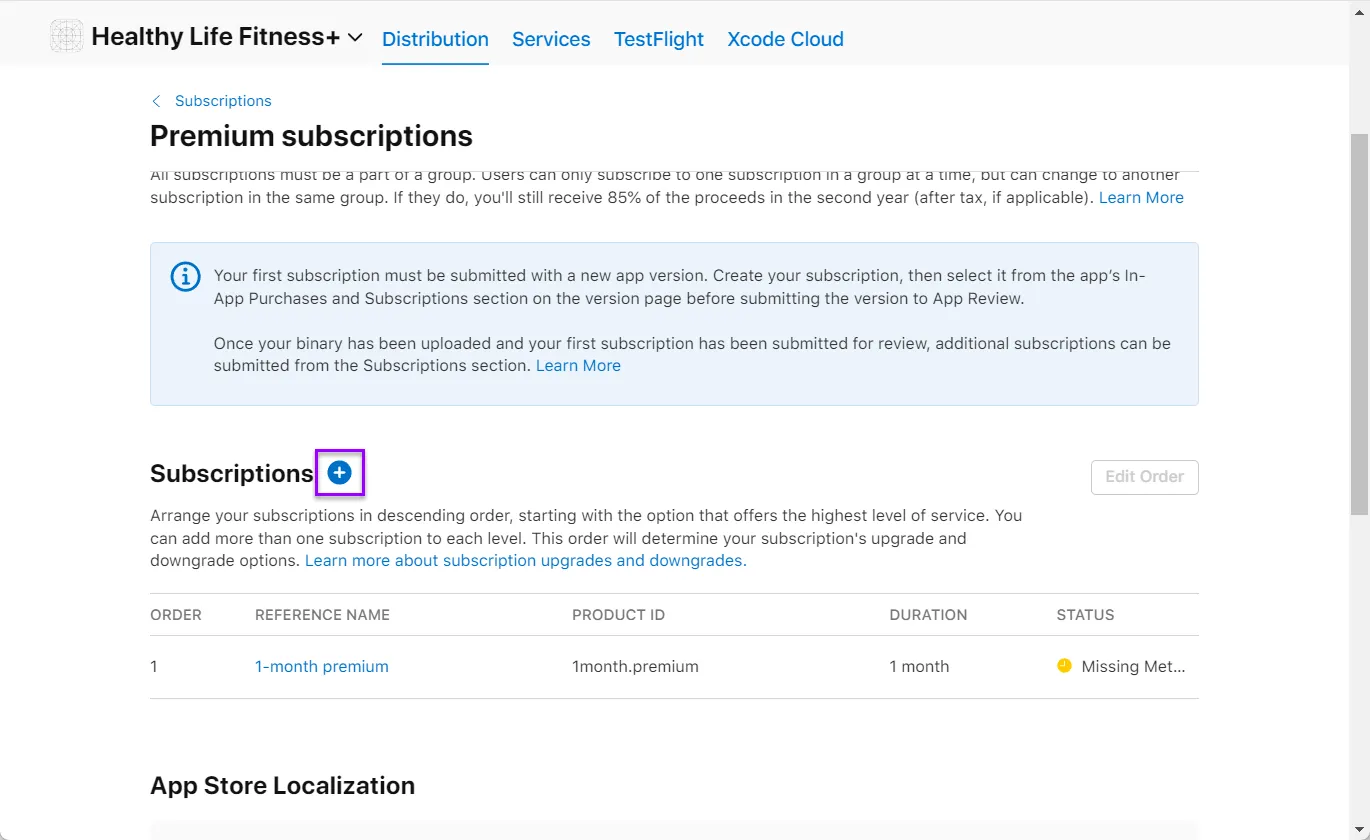 Open App Store Connect. Proceed to Monetization → Subscriptions section in the left-side menu.