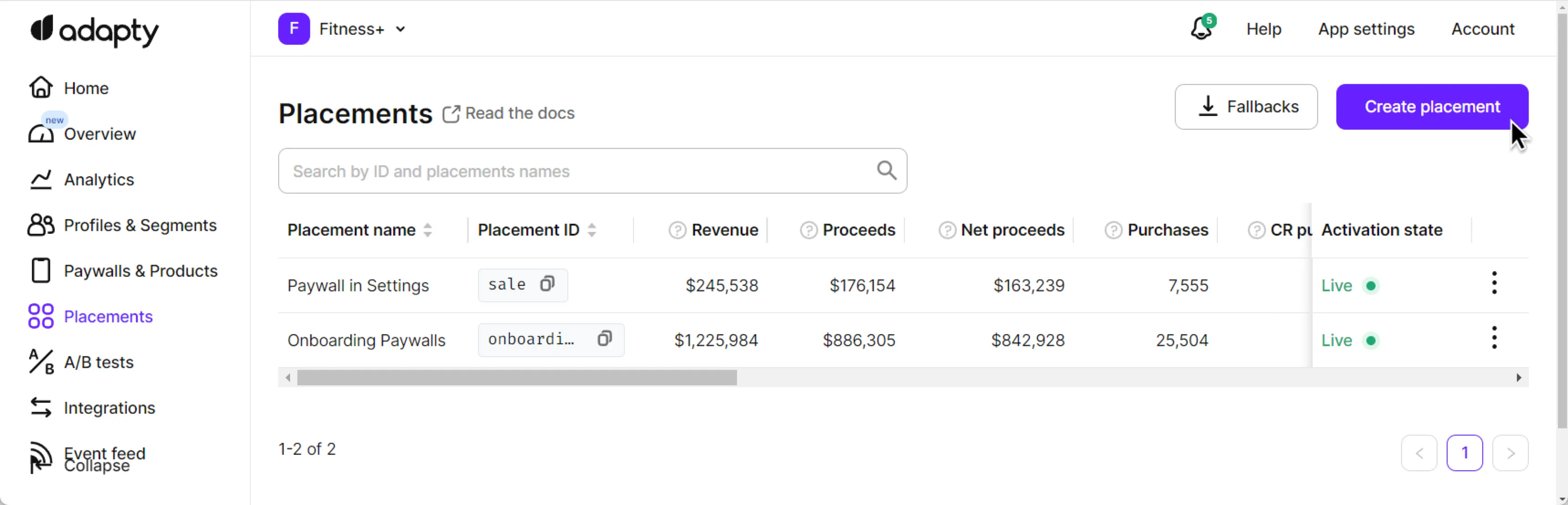 Open the Placements section in the Adapty main menu.