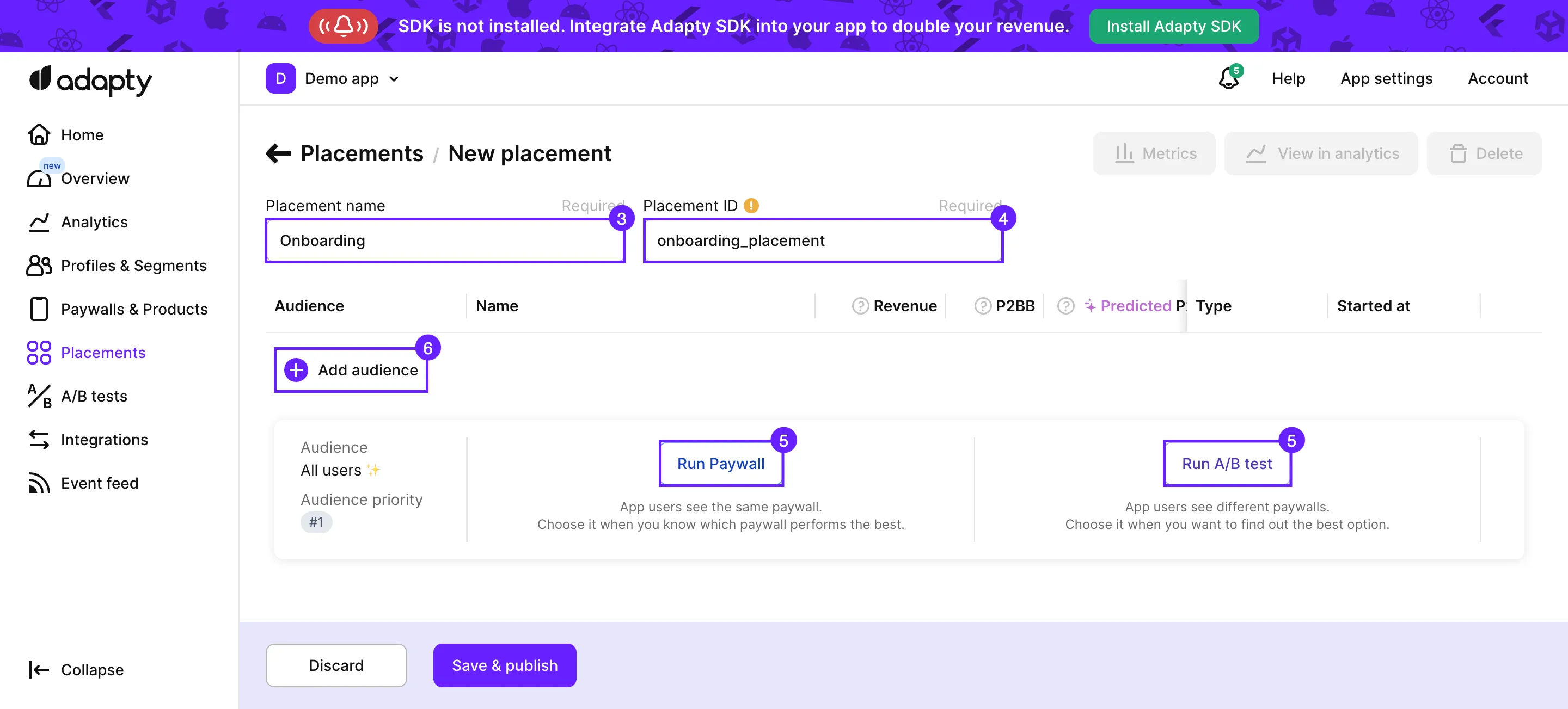 - Add a paywall or A/B test to the "All users" audience, which is automatically created for every placement.