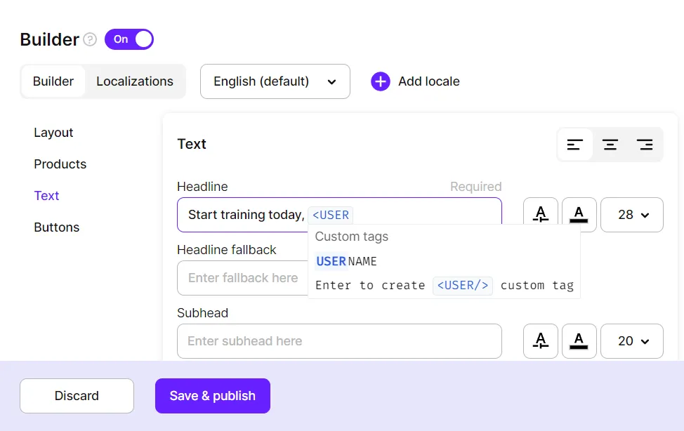 Every text line you see in Paywall Builder can have one or more custom tags.