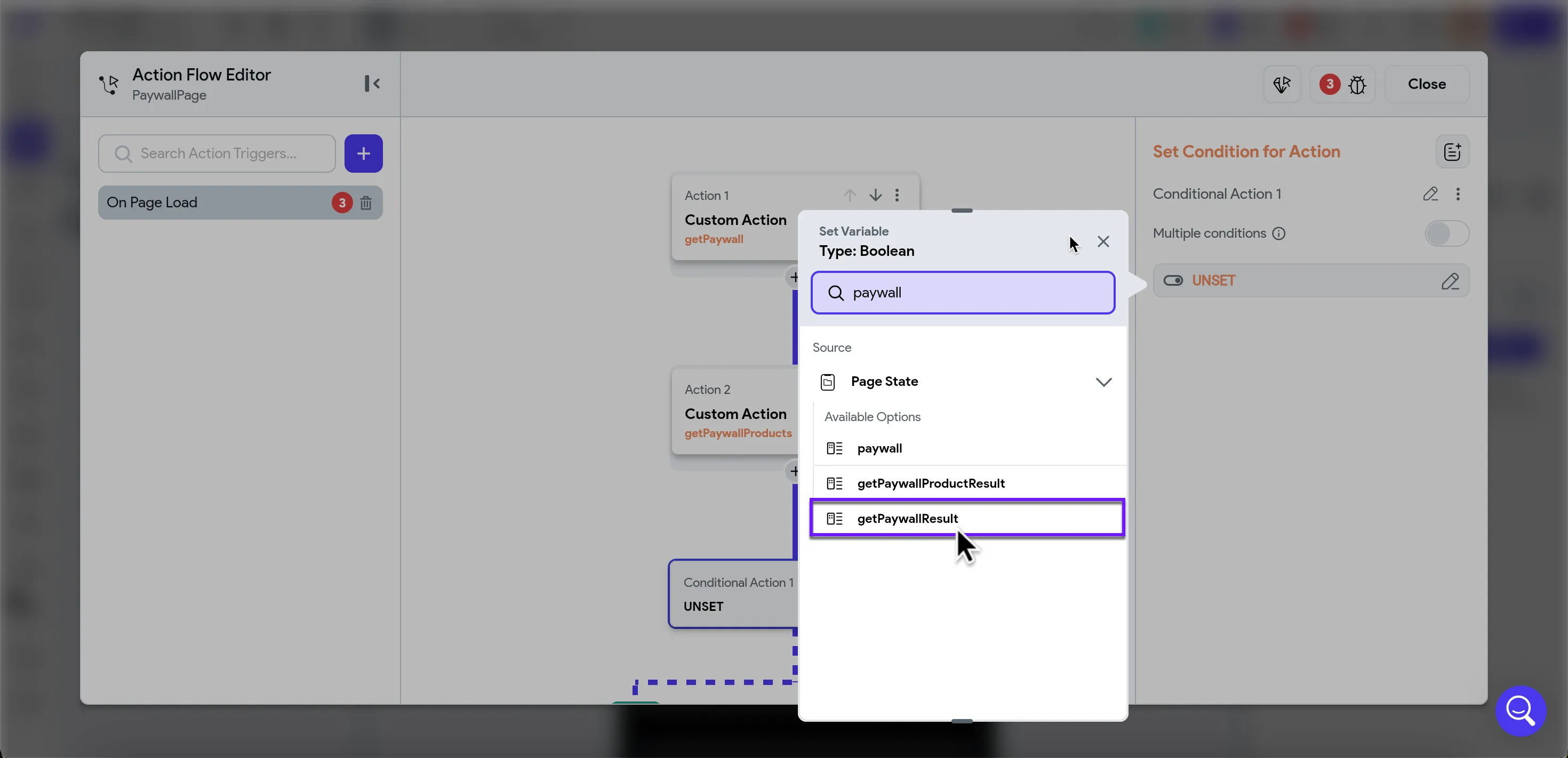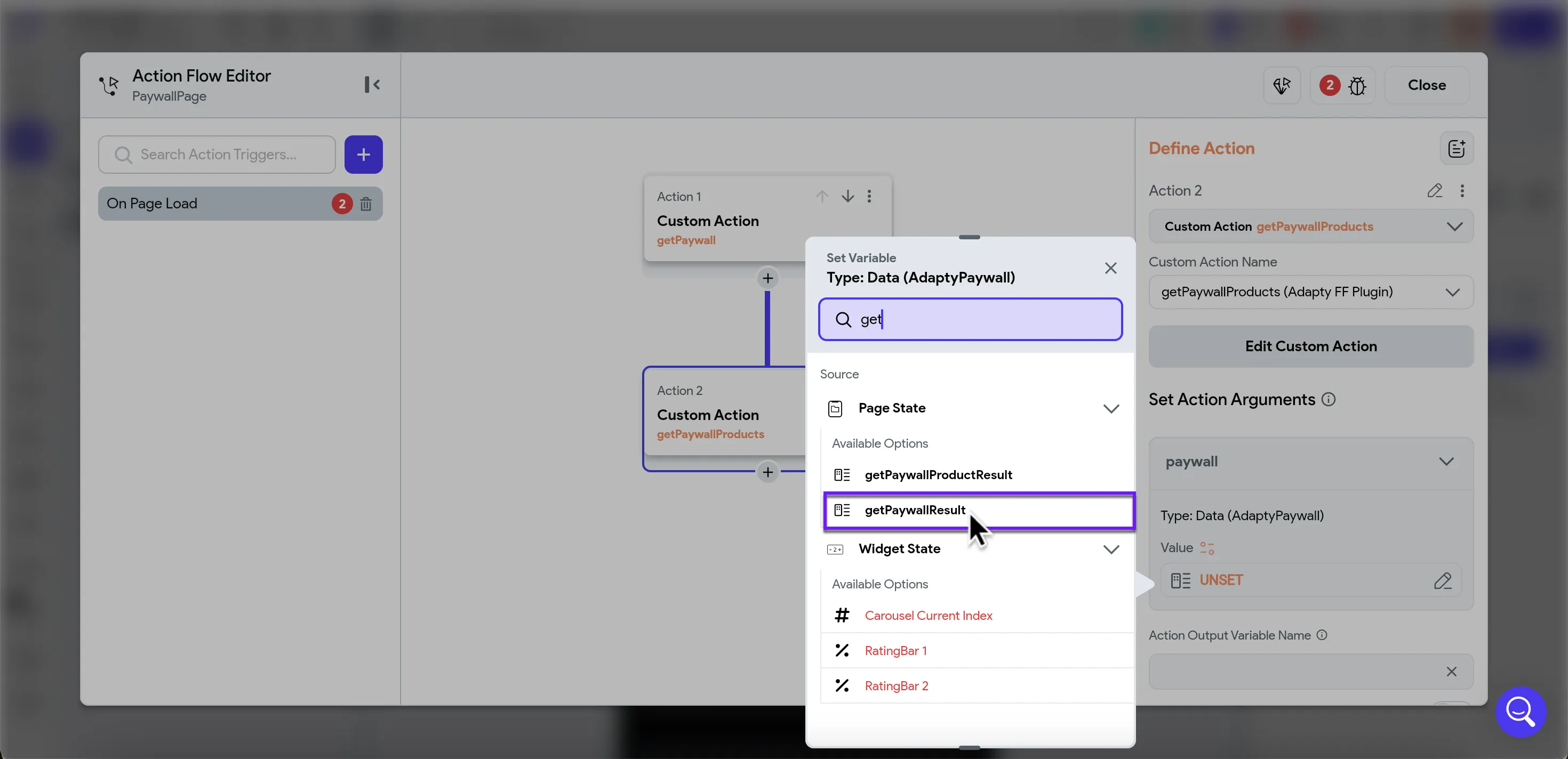 | Set Variable | getPaywallProductResult variable we've created |
