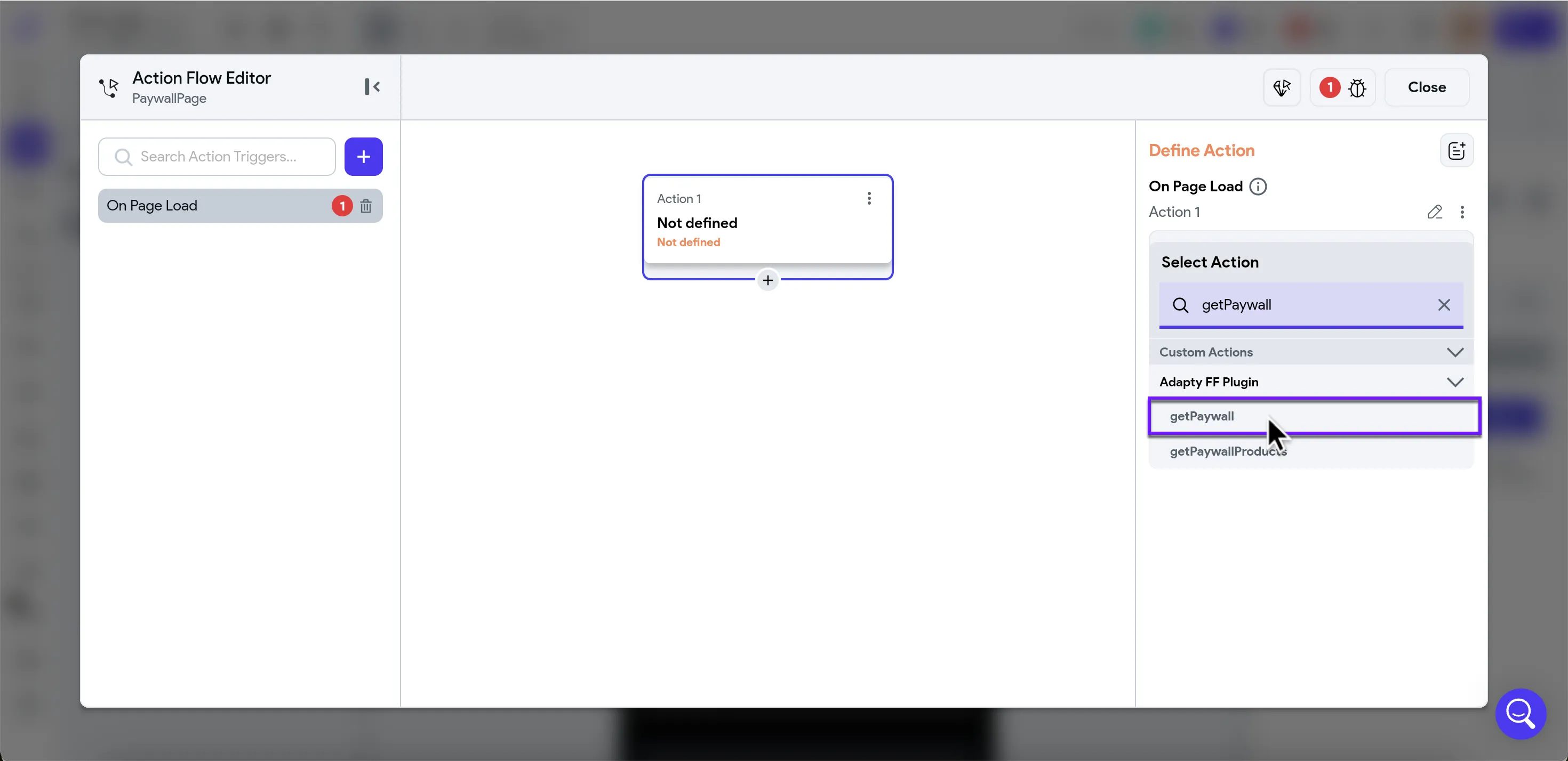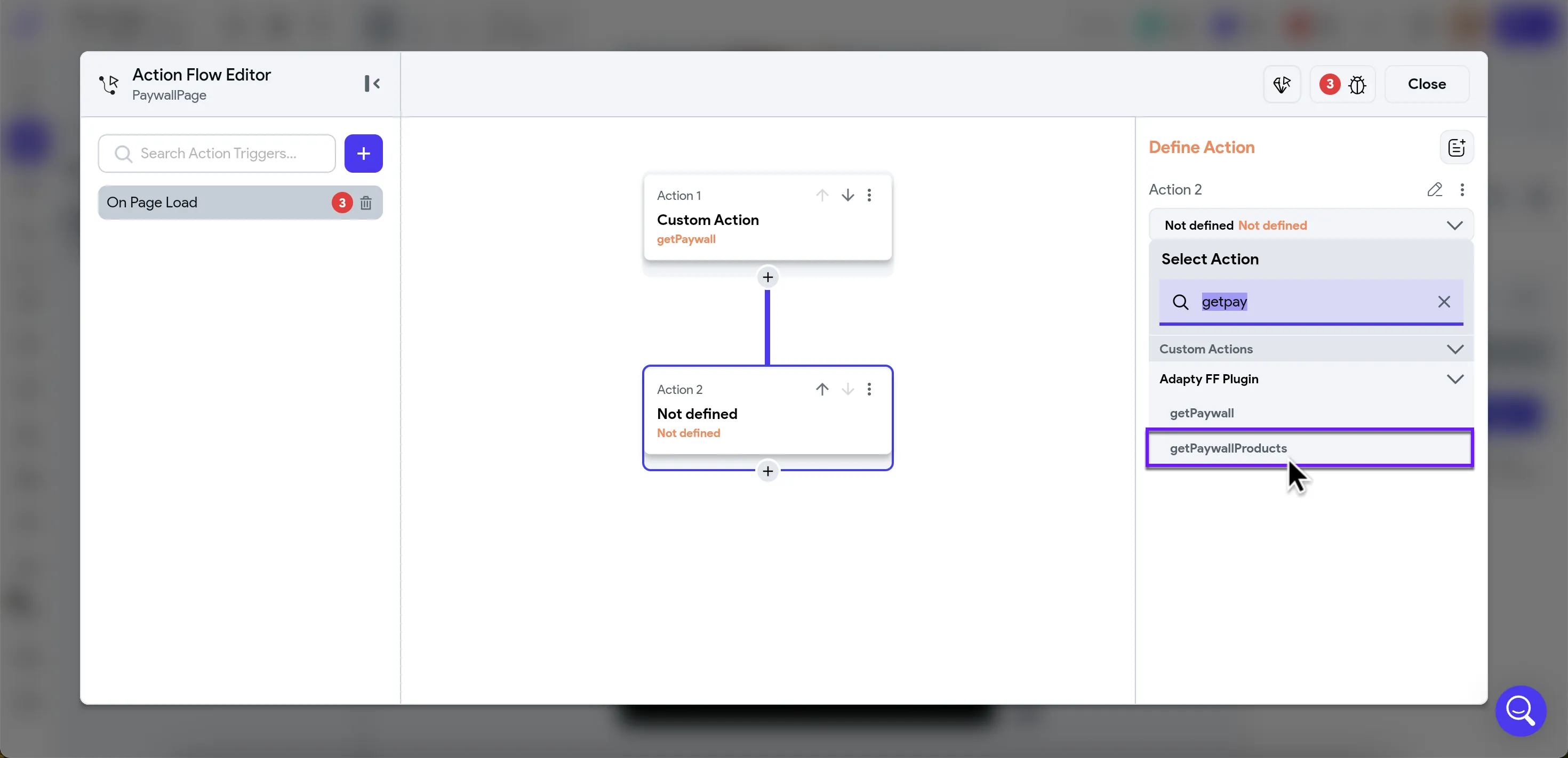 getPaywallcustom action and choose it.