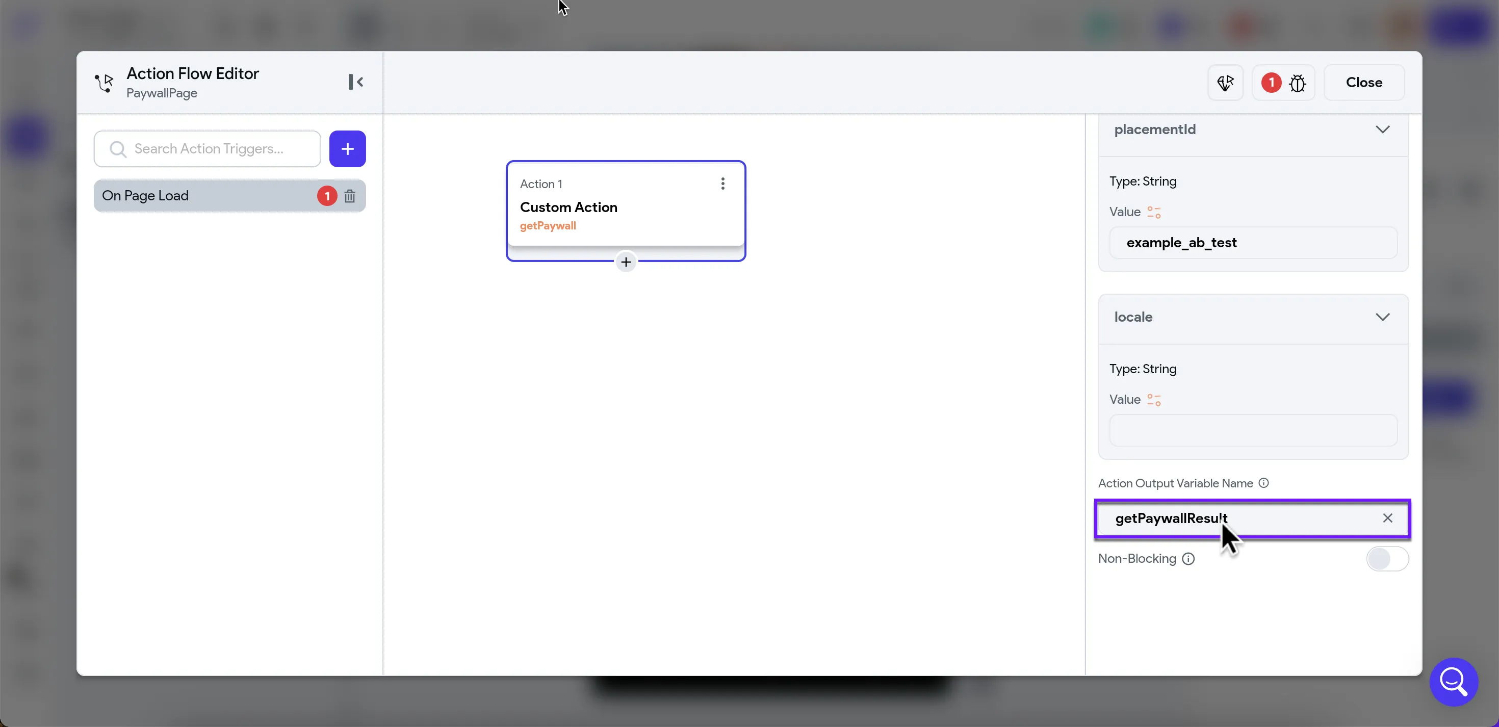 - In the Select Action field, search for and choose **logShowPaywall **.