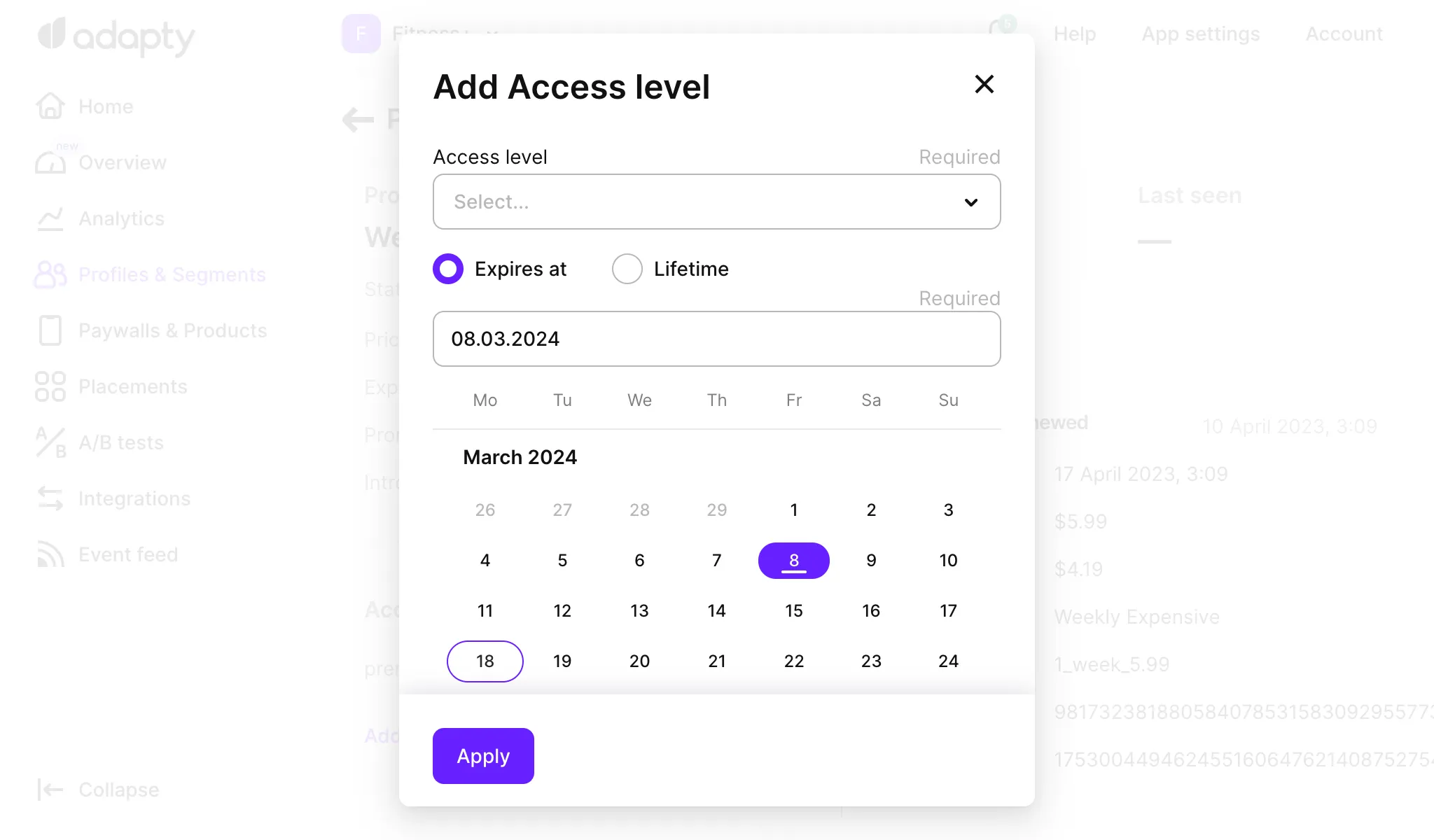 Give access level to a specific customer in the Adapty Dashboard