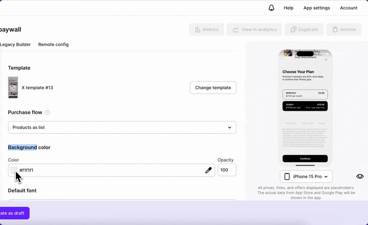 Font settings of your paywall