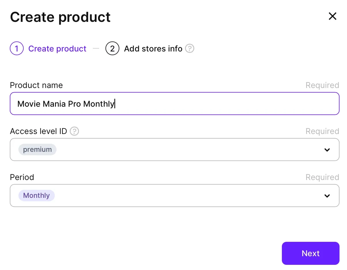 Name the product whatever makes sense for you as it will be how you reference that product from now on inside Adapty’s dashboard.