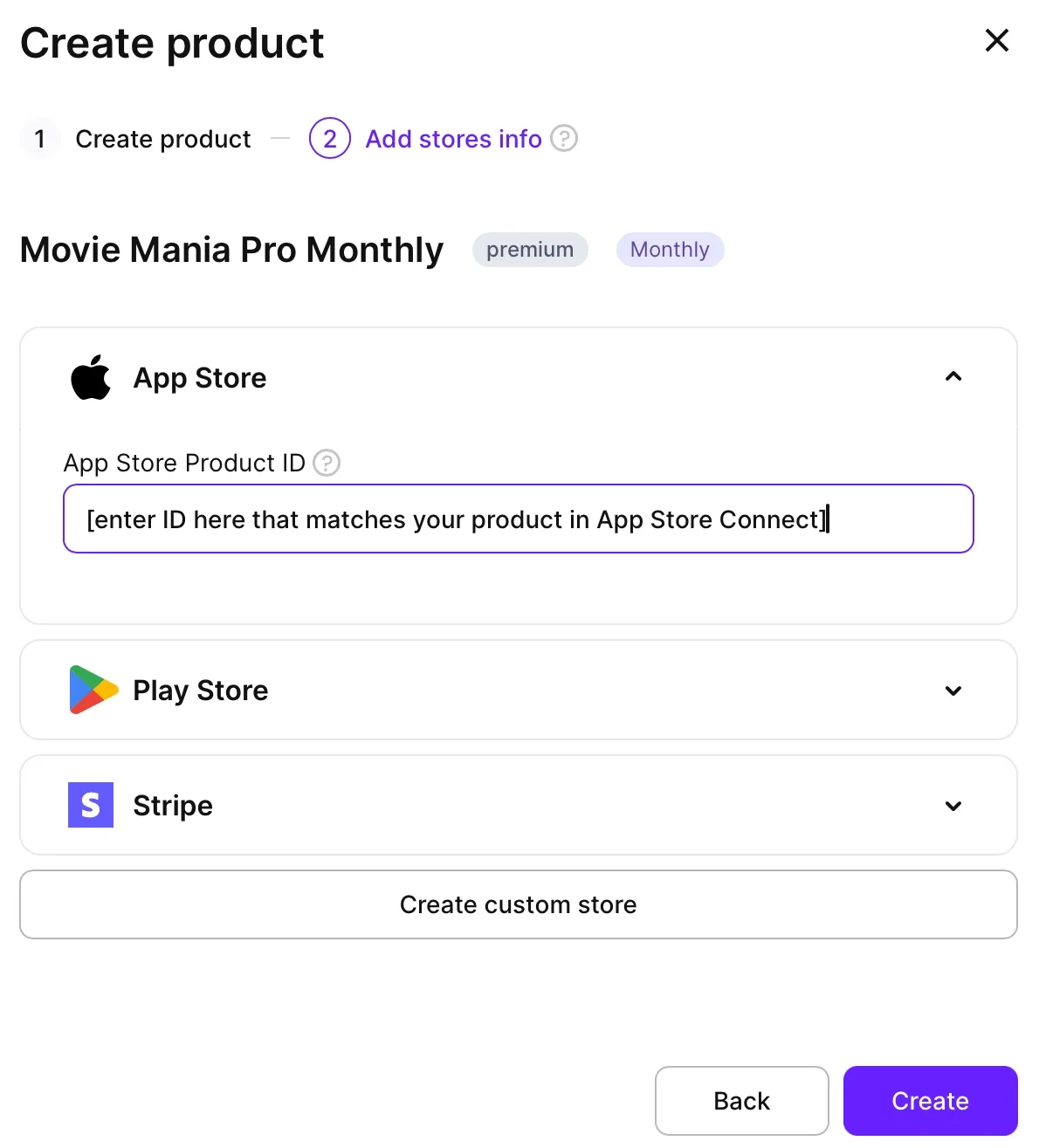 - Enter the product ID that matches what you set in App Store Connect.
