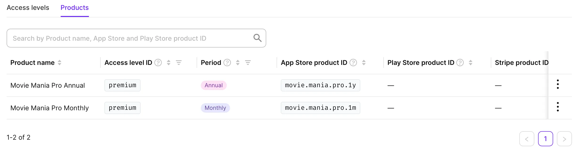 Navigate to the Products section in the left-side navigation bar and click on the tab called Access Levels. A default access level has been created for you (