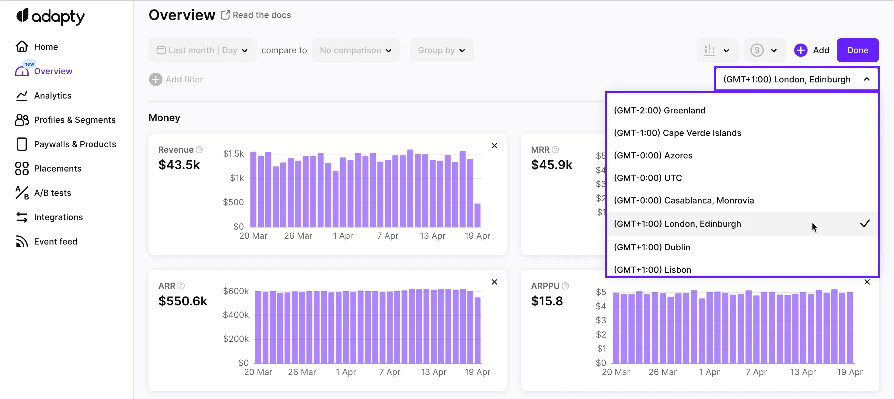 Receive timely and relevant information straight to your inbox, including revenue, churn rate, active subscribers, active trials, and more – the same metrics available in Charts. These reports can arrive on a daily, weekly or monthly basis and show dynamics comparing the most recent period to the one that came before it.