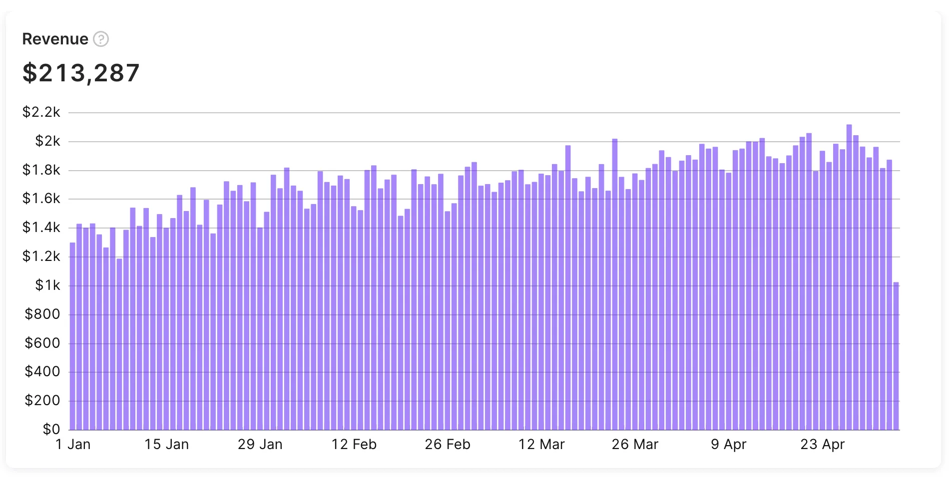 The revenue chart displays the total revenue earned from both subscriptions and one-time purchases, minus the revenue that was refunded later. The Revenue chart is an essential tool to monitor the financial performance of the app.