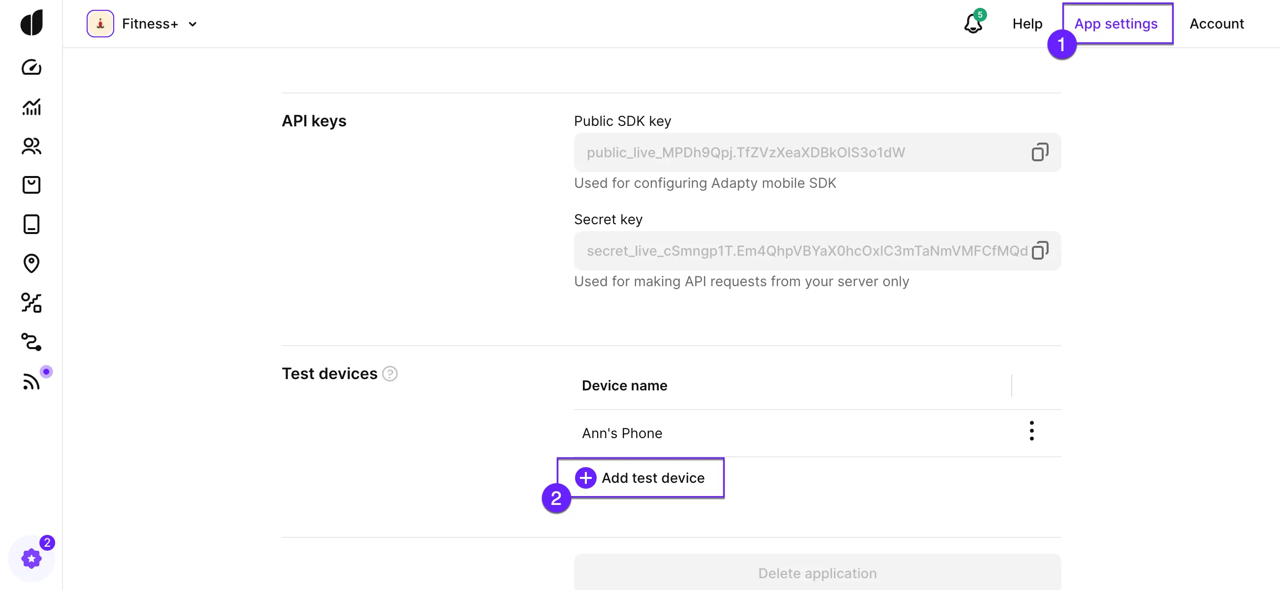 - IDFA (iOS) and Advertising ID (Android): These advertising identifiers are a perfect choice for iOS and Android devices respectively if you're already asking your users for consent to access them. Even if you have a Customer User ID, you may prefer using advertising identifiers if you switch between accounts in your app while testing. Additionally, those identifiers are beneficial if the same account has both test and personal devices and you don't want the personal devices marked as test devices.