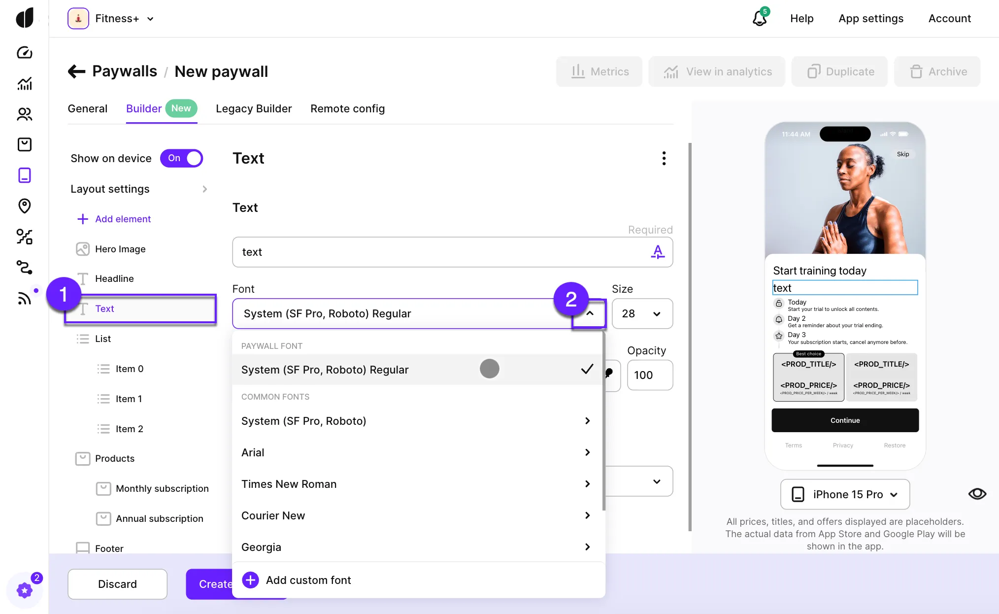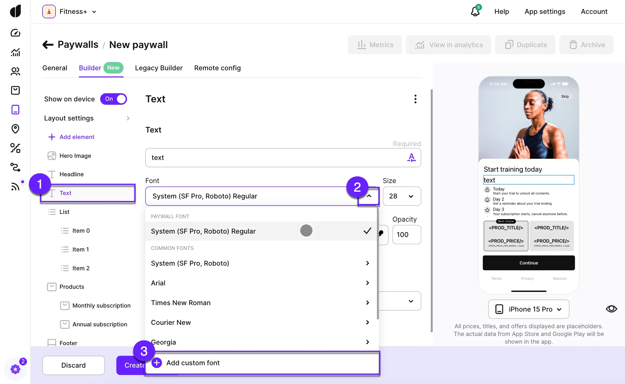 Custom fonts in Paywall Builder